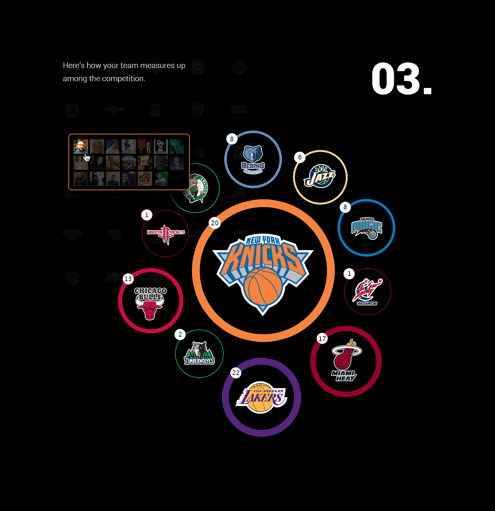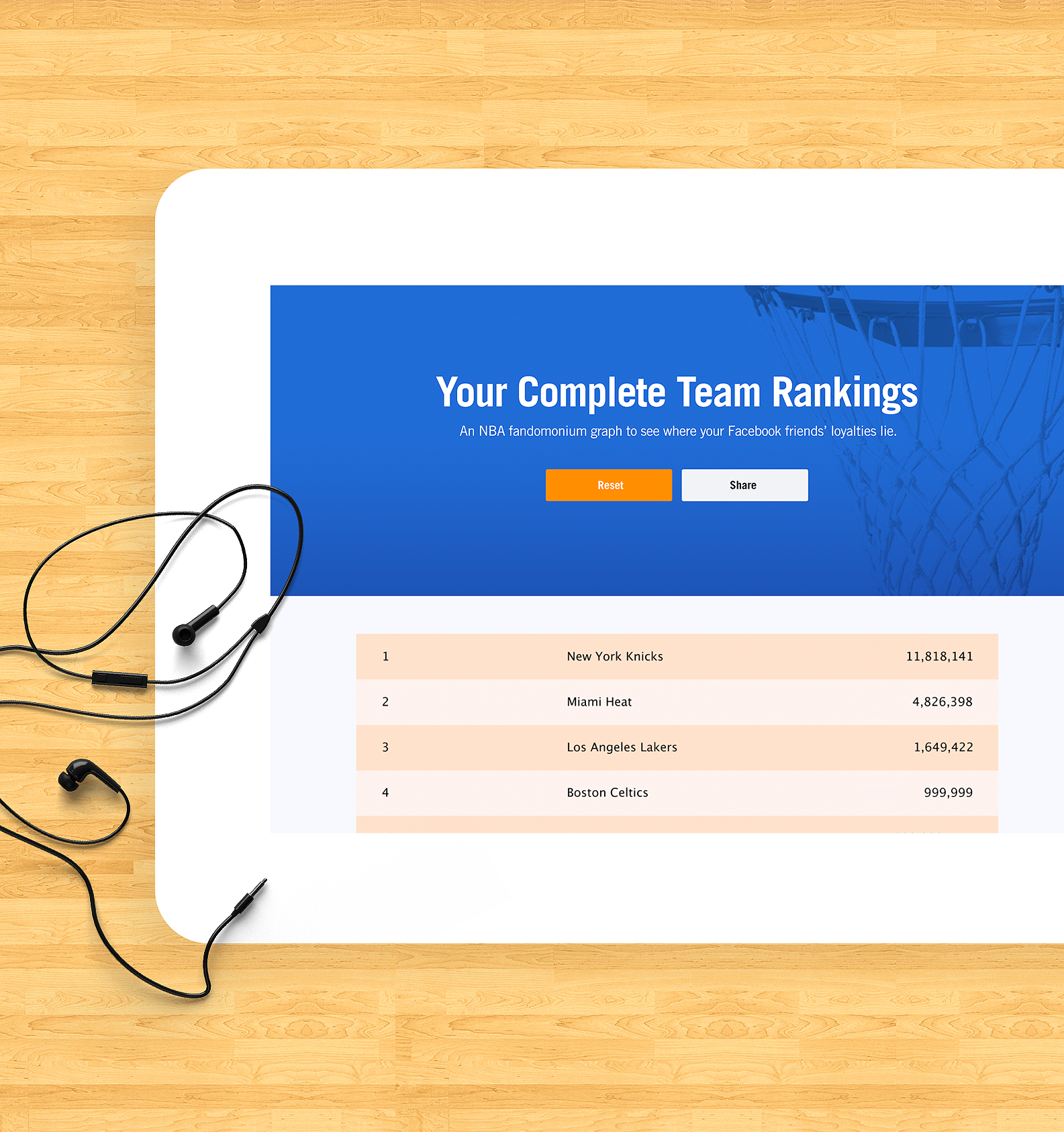 We used Facebookâs API to mine each users social graph so you can see who in your network is a fan or foe of your favorite teams, with additional data and complete rankings you could see where your team ranks, post it on your wall in order to taunt your foes and encourage fellow fans to boost your team rankings.